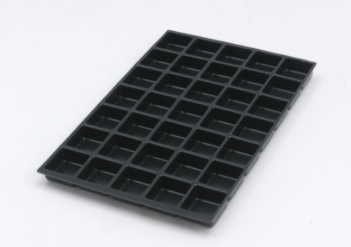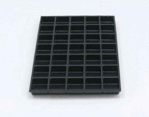 "metaDescription": "Bisley Jeu d'inserts pour tiroirs - 35compartiments, p. face avant H 22mm, lxP 232x365mm, plastique, noir",