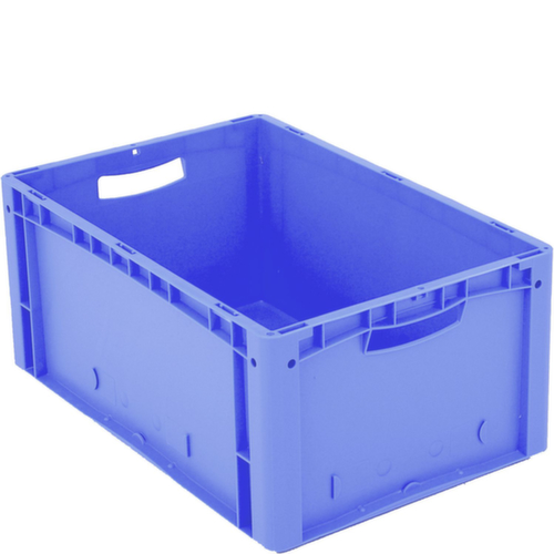dimensions adaptées aux palettes européennes. en polypropylène incassable en bleu. Parois plein, fond plein. transport facile grâce à poignées ouvertes. Plusieurs niveaux gerbable. convient pour aliments. Résistant à la température -20 °C à +80 °C. Convient pour différents tissus, nous consulter.