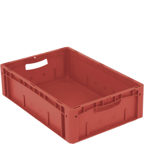 dimensions adaptées aux palettes européennes. en polypropylène incassable en rouge. Parois plein, fond plein. transport facile grâce à poignées ouvertes. Plusieurs niveaux gerbable. convient pour aliments. Résistant à la température -20 °C à +80 °C. Convient pour différents tissus, nous consulter.