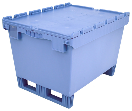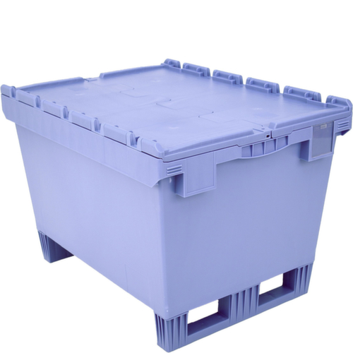 Norme européenne. en polypropylène incassable en bleu pigeon. La marchandise se stocke à l’abri de la poussière grâce aux parois fermées et le récipient se nettoie facilement. tablettes plein avec renfort grâce à double fond. couvercle crocodile. Les patins garantissent un déplacement et une prise facilités avec un gerbeur. empilable pour gain de place. Adapté aux convoyeurs à rouleaux.