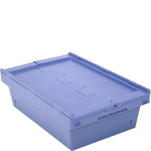 Norme européenne. en polypropylène incassable en bleu pigeon. La marchandise se stocke à l’abri de la poussière grâce aux parois fermées et le récipient se nettoie facilement. fond plein. La marchandise stockée est protégée contre la poussière et la saleté grâce au couvercle à charnière en 2 parties. Gerbages avec couvercle ouvert. Adapté aux convoyeurs à rouleaux. résistant à la température de -20 °C à +80 °C.