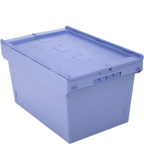 Norme européenne. en polypropylène incassable en bleu pigeon. La marchandise se stocke à l’abri de la poussière grâce aux parois fermées et le récipient se nettoie facilement. fond plein. La marchandise stockée est protégée contre la poussière et la saleté grâce au couvercle à charnière en 2 parties. Gerbages avec couvercle ouvert. Adapté aux convoyeurs à rouleaux. résistant à la température de -20 °C à +80 °C.