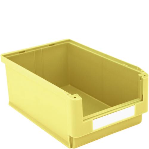 en polypropylène incassable en jaune. résistant à la température de -20 °C à +90 °C. de qualité alimentaire, convient pour aliments non emballés selon RAL A 74, sans cadmium. fond gratté. transport facile grâce à poignée encastrée sur la face avant. avec surface d'étiquetage. convient pour convoyeurs à rouleaux et rayonnages dynamiques.