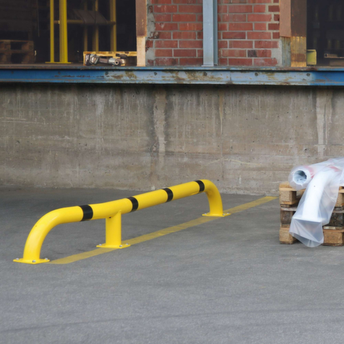 "longDescription": "<h2>Aide à l'entrée</h2><strong>idéal pour les rampes de chargement comme aide à l'entrée de camions</strong><br><ul><li><strong>Effet de signalisation</strong> - dans une couleur d'avertissement avec bandes réfléchissantes</li><li><strong>Résiste parfaitement aux intempéries, durable</strong> - en tube d'acier galvanisé à chaud</li><li><strong>Utilisation fixe</strong> - avec plaque de fond à cheviller</li></ul><br><h3>Le choix vous appartient :</h3><ul><li><strong>Surface inusable</strong> - au choix avec revêtement plastique supplémentaire</li></ul>",
