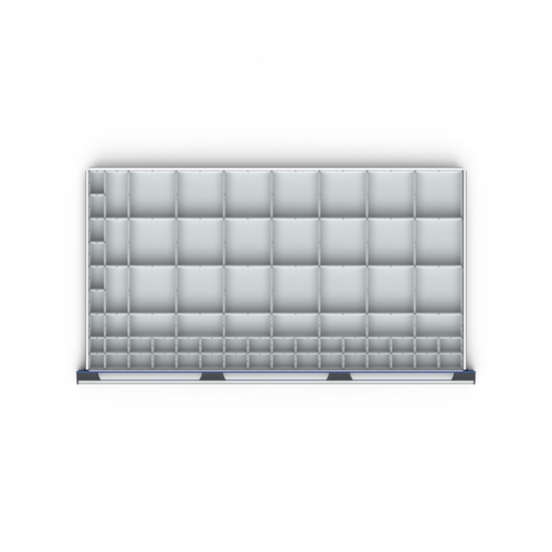 "metaDescription": "bott Compartimentage de tiroir cubio - 71bacs, p. face avant H 100mm, lxP 1050x650mm, plastique, RAL7011",