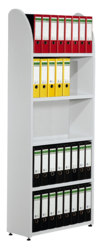 les principales dimensions du du rayonnage de bureau en un coup d’œil :Les dossiers et autres outils de travail sont classés de manière clairement organisée sur 5 niveau(x) avec tablette en acier et sont toujours simples d’accès. utilisation unilatéral - conçu pour un montage mural. paroi arrière plein. structure en bois et acier. corps avec revêtement mélaminé, facile d’entretien en RAL7035 gris clair. niveaux avec finition époxy résistante aux chocs et aux rayures en RAL7035 gris clair. parois latérales avec pieds de nivellement en hauteur pour compenser facilement les inégalités du sol.