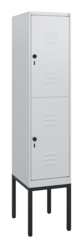 Les principales dimensions de C+P l’armoire vestiaire Classic Plus en un coup d’œil :par compartiment 2 casiers avec chacun 1 tringle et 3 doubles crochets coulissants anti-torsion. porte battante avec porte-étiquette et fentes d’aération. Les gonds intérieurs des portes battantes offrent l’avantage d’un visuel net, car aucune vis ou charnière n’est visible de l’extérieur. Le design de l’armoire n’est donc pas altéré et l’ensemble du meuble semble de meilleure qualité. La surface lisse est également plus facile à nettoyer, car aucun dépôt de saleté ou de poussière n’est à craindre aux endroits inaccessibles. Chaque porte est équipée de série d’un amortisseur, de sorte que, même fermée avec élan, elle ne claque pas. Cela contribue non seulement à améliorer l’environnement sonore, mais protège aussi l’armoire en acier des dommages. La structure BIONIC Steel Frame, inspirée de la nature, est une construction particulièrement efficace et stable. La structure interne raffinée composée de pliages, d’entretoises et d’espaces, ainsi que la plus grande épaisseur de matériau aux endroits cruciaux, comme à l’avant des parois latérales et dans les profilés de cloisons et de caissons, augmentent encore la rigidité. Verrouillable avec Porte-cadenas de sécurité pour cadenas. La serrure de sécurité est particulièrement résistante aux effractions puisqu’elle tourne en position verrouillée et se verrouille uniquement après le retrait de la serrure. Convient pour tous les cadenas avec une épaisseur d'anse de 6 - 8 mm. Les orifices de ventilation supplémentaires dans le compartiment, combinés aux fentes d’aération dans la porte, améliorent le flux d’air. L’intérieur de l’armoire est ainsi mieux ventilé et son contenu sèche plus vite, sans générer de mauvaises odeurs. Le piètement intégré réduit l'accumulation possible de la poussière et de la saleté en facilitant le nettoyage de toute la surface. Crée en plus un espace de rangement supplémentaire sous l'armoire. Les chaussures et les sacs ne sont plus dans le passage, et le risque de trébuchement est minimisé. structure en acier, soudé de manière stable. Cela rend la structure particulièrement robuste et résistante, et donc plus durable. Les coins et les angles soudés du corps garantissent une plus grande étanchéité et donc une meilleure protection contre la poussière, l’humidité et la saleté qu’une structure vissée. En outre, il n’est pas nécessaire de procéder à des travaux d’entretien réguliers ni à des réajustements. corps avec thermolaquage en RAL7035 gris clair, face avant avec thermolaquage en RAL7035 gris clair.