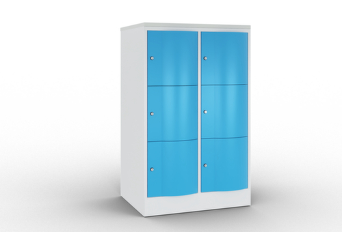 La porte battante convexe vers l’avant est absolument stable et résistante au vandalisme, même aux coups de pied. Les portes battantes sont montées sur des charnières robustes à espagnolettes internes et résistent ainsi à des sollicitations élevées. Chaque porte est équipée de série d’un amortisseur, de sorte que, même fermée avec élan, elle ne claque pas. Cela contribue non seulement à améliorer l’environnement sonore, mais protège aussi l’armoire en acier des dommages. De plus, la limitation d’ouverture de porte protège la porte contre l’extension excessive et contre le chevauchement de la surface utile avec l’armoire annexe. verrouillable avec serrure à cylindre. Les orifices de ventilation dans la paroi arrière assurent une bonne circulation de l’air dans chaque casier. Grâce au plateau supérieur, l’armoire à poser peut être utilisée comme surface de travail ou tablette supplémentaire. Le socle encastré permet de répartir uniformément le poids de l’armoire sur le sol. Cela augmente la stabilité et l’armoire peut supporter des charges plus lourdes qu’une armoire à pieds. De plus, la saleté, la poussière et l’humidité ne peuvent pas s’infiltrer sous l’armoire, ce qui réduit la surface de nettoyage. structure en tôle d'acier, soudé. corps avec thermolaquage. face avant avec thermolaquage. panneau finition comme couleur du corps.