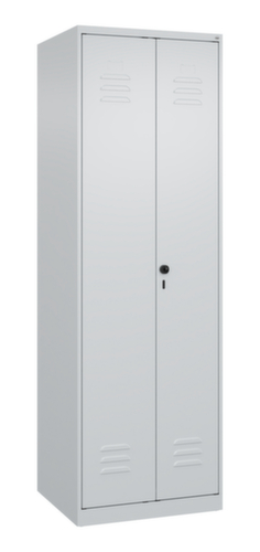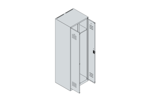 Les principales dimensions de C+P l’armoire vestiaire Classic Plus en un coup d’œil :par compartiment une tablette à chapeaux soudée au-dessus d’une tringle avec 3 doubles crochets coulissants anti-torsion. porte battante avec porte-étiquette et fentes d’aération. Les gonds intérieurs des portes battantes offrent l’avantage d’un visuel net, car aucune vis ou charnière n’est visible de l’extérieur. Le design de l’armoire n’est donc pas altéré et l’ensemble du meuble semble de meilleure qualité. La surface lisse est également plus facile à nettoyer, car aucun dépôt de saleté ou de poussière n’est à craindre aux endroits inaccessibles. Chaque porte est équipée de série d’un amortisseur, de sorte que, même fermée avec élan, elle ne claque pas. Cela contribue non seulement à améliorer l’environnement sonore, mais protège aussi l’armoire en acier des dommages. La structure BIONIC Steel Frame, inspirée de la nature, est une construction particulièrement efficace et stable. La structure interne raffinée composée de pliages, d’entretoises et d’espaces, ainsi que la plus grande épaisseur de matériau aux endroits cruciaux, comme à l’avant des parois latérales et dans les profilés de cloisons et de caissons, augmentent encore la rigidité. Verrouillable avec Porte-cadenas de sécurité pour cadenas. La serrure de sécurité est particulièrement résistante aux effractions puisqu’elle tourne en position verrouillée et se verrouille uniquement après le retrait de la serrure. Convient pour tous les cadenas avec une épaisseur d'anse de 6 - 8 mm. Chaque personne dispose de 2 compartiments qui peuvent être verrouillés ensemble via des portes convergentes. Cela permet de séparer de manière simple et efficace les vêtements de travail et ceux de tous les jours. Les orifices de ventilation supplémentaires dans le compartiment, combinés aux fentes d’aération dans la porte, améliorent le flux d’air. L’intérieur de l’armoire est ainsi mieux ventilé et son contenu sèche plus vite, sans générer de mauvaises odeurs. Pour une apparence fine et un gain de place, l’armoire se pose directement au sol sans socle ni pieds. Des vis de mise à niveau assurent une pose sans vacillement en cas d’éventuelles irrégularités du sol. Le fond de l’armoire est galvanisé pour une protection anticorrosion améliorée. structure en acier, soudé de manière stable. Cela rend la structure particulièrement robuste et résistante, et donc plus durable. Les coins et les angles soudés du corps garantissent une plus grande étanchéité et donc une meilleure protection contre la poussière, l’humidité et la saleté qu’une structure vissée. En outre, il n’est pas nécessaire de procéder à des travaux d’entretien réguliers ni à des réajustements. corps avec thermolaquage en RAL7035 gris clair, face avant avec thermolaquage en RAL7035 gris clair.