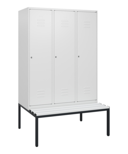 Les principales dimensions de C+P l’armoire vestiaire Classic Plus en un coup d’œil :par compartiment une tablette à chapeaux soudée au-dessus d’une tringle avec 3 doubles crochets coulissants anti-torsion. porte battante avec porte-étiquette et fentes d’aération. Les gonds intérieurs des portes battantes offrent l’avantage d’un visuel net, car aucune vis ou charnière n’est visible de l’extérieur. Le design de l’armoire n’est donc pas altéré et l’ensemble du meuble semble de meilleure qualité. La surface lisse est également plus facile à nettoyer, car aucun dépôt de saleté ou de poussière n’est à craindre aux endroits inaccessibles. Chaque porte est équipée de série d’un amortisseur, de sorte que, même fermée avec élan, elle ne claque pas. Cela contribue non seulement à améliorer l’environnement sonore, mais protège aussi l’armoire en acier des dommages. La structure BIONIC Steel Frame, inspirée de la nature, est une construction particulièrement efficace et stable. La structure interne raffinée composée de pliages, d’entretoises et d’espaces, ainsi que la plus grande épaisseur de matériau aux endroits cruciaux, comme à l’avant des parois latérales et dans les profilés de cloisons et de caissons, augmentent encore la rigidité. verrouillable avec serrure à cylindre. Les orifices de ventilation supplémentaires dans le compartiment, combinés aux fentes d’aération dans la porte, améliorent le flux d’air. L’intérieur de l’armoire est ainsi mieux ventilé et son contenu sèche plus vite, sans générer de mauvaises odeurs. Le banc intégré assure une utilisation efficace de l'espace disponible. Il permet de s'habiller et de se déshabiller facilement et offre un espace de rangement supplémentaire sans prendre de place. Les lames sont en plastique. structure en acier, soudé de manière stable. Cela rend la structure particulièrement robuste et résistante, et donc plus durable. Les coins et les angles soudés du corps garantissent une plus grande étanchéité et donc une meilleure protection contre la poussière, l’humidité et la saleté qu’une structure vissée. En outre, il n’est pas nécessaire de procéder à des travaux d’entretien réguliers ni à des réajustements. corps avec thermolaquage en RAL9016 blanc signalisation, face avant avec thermolaquage en RAL9016 blanc signalisation.