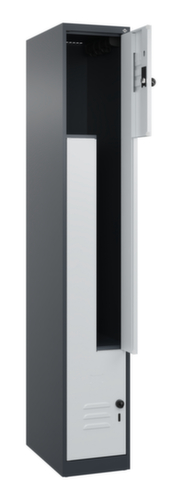 Les principales dimensions de C+P l’armoire vestiaire Classic Plus en un coup d’œil :par compartiment 1 tringle avec 3 doubles crochets coulissants anti-torsion. porte battante avec porte-étiquette et fentes d’aération. Les gonds intérieurs des portes battantes offrent l’avantage d’un visuel net, car aucune vis ou charnière n’est visible de l’extérieur. Le design de l’armoire n’est donc pas altéré et l’ensemble du meuble semble de meilleure qualité. La surface lisse est également plus facile à nettoyer, car aucun dépôt de saleté ou de poussière n’est à craindre aux endroits inaccessibles. Chaque porte est équipée de série d’un amortisseur, de sorte que, même fermée avec élan, elle ne claque pas. Cela contribue non seulement à améliorer l’environnement sonore, mais protège aussi l’armoire en acier des dommages. La structure BIONIC Steel Frame, inspirée de la nature, est une construction particulièrement efficace et stable. La structure interne raffinée composée de pliages, d’entretoises et d’espaces, ainsi que la plus grande épaisseur de matériau aux endroits cruciaux, comme à l’avant des parois latérales et dans les profilés de cloisons et de caissons, augmentent encore la rigidité. Verrouillable avec Porte-cadenas de sécurité pour cadenas. La serrure de sécurité est particulièrement résistante aux effractions puisqu’elle tourne en position verrouillée et se verrouille uniquement après le retrait de la serrure. Convient pour tous les cadenas avec une épaisseur d'anse de 6 - 8 mm. Les orifices de ventilation supplémentaires dans le compartiment, combinés aux fentes d’aération dans la porte, améliorent le flux d’air. L’intérieur de l’armoire est ainsi mieux ventilé et son contenu sèche plus vite, sans générer de mauvaises odeurs. Pour une apparence fine et un gain de place, l’armoire se pose directement au sol sans socle ni pieds. Des vis de mise à niveau assurent une pose sans vacillement en cas d’éventuelles irrégularités du sol. Le fond de l’armoire est galvanisé pour une protection anticorrosion améliorée. structure en acier, soudé de manière stable. Cela rend la structure particulièrement robuste et résistante, et donc plus durable. Les coins et les angles soudés du corps garantissent une plus grande étanchéité et donc une meilleure protection contre la poussière, l’humidité et la saleté qu’une structure vissée. En outre, il n’est pas nécessaire de procéder à des travaux d’entretien réguliers ni à des réajustements. corps avec thermolaquage en RAL7016 gris anthracite, face avant avec thermolaquage en RAL7035 gris clair.