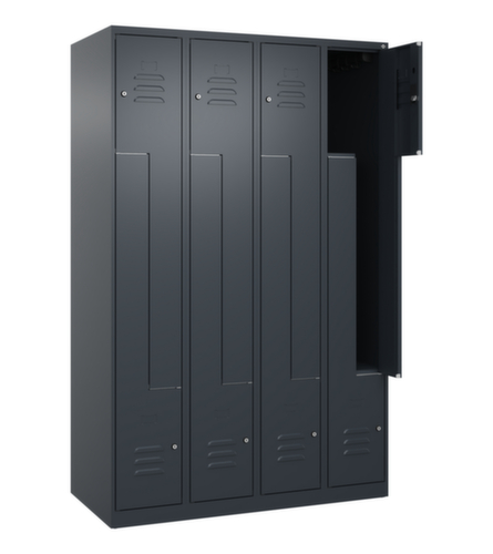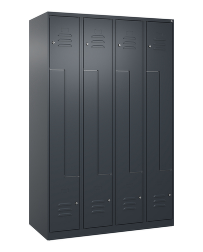 Les principales dimensions de C+P l’armoire vestiaire Classic Plus en un coup d’œil :par compartiment 1 tringle avec 3 doubles crochets coulissants anti-torsion. porte battante avec porte-étiquette et fentes d’aération. Les gonds intérieurs des portes battantes offrent l’avantage d’un visuel net, car aucune vis ou charnière n’est visible de l’extérieur. Le design de l’armoire n’est donc pas altéré et l’ensemble du meuble semble de meilleure qualité. La surface lisse est également plus facile à nettoyer, car aucun dépôt de saleté ou de poussière n’est à craindre aux endroits inaccessibles. Chaque porte est équipée de série d’un amortisseur, de sorte que, même fermée avec élan, elle ne claque pas. Cela contribue non seulement à améliorer l’environnement sonore, mais protège aussi l’armoire en acier des dommages. La structure BIONIC Steel Frame, inspirée de la nature, est une construction particulièrement efficace et stable. La structure interne raffinée composée de pliages, d’entretoises et d’espaces, ainsi que la plus grande épaisseur de matériau aux endroits cruciaux, comme à l’avant des parois latérales et dans les profilés de cloisons et de caissons, augmentent encore la rigidité. verrouillable avec serrure à cylindre. Les orifices de ventilation supplémentaires dans le compartiment, combinés aux fentes d’aération dans la porte, améliorent le flux d’air. L’intérieur de l’armoire est ainsi mieux ventilé et son contenu sèche plus vite, sans générer de mauvaises odeurs. Pour une apparence fine et un gain de place, l’armoire se pose directement au sol sans socle ni pieds. Des vis de mise à niveau assurent une pose sans vacillement en cas d’éventuelles irrégularités du sol. Le fond de l’armoire est galvanisé pour une protection anticorrosion améliorée. structure en acier, soudé de manière stable. Cela rend la structure particulièrement robuste et résistante, et donc plus durable. Les coins et les angles soudés du corps garantissent une plus grande étanchéité et donc une meilleure protection contre la poussière, l’humidité et la saleté qu’une structure vissée. En outre, il n’est pas nécessaire de procéder à des travaux d’entretien réguliers ni à des réajustements. corps avec thermolaquage en RAL7016 gris anthracite, face avant avec thermolaquage en RAL7016 gris anthracite.