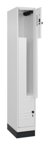 Les principales dimensions de C+P l’armoire vestiaire Classic Plus en un coup d’œil :par compartiment 1 tringle avec 3 doubles crochets coulissants anti-torsion. porte battante avec porte-étiquette et fentes d’aération. Les gonds intérieurs des portes battantes offrent l’avantage d’un visuel net, car aucune vis ou charnière n’est visible de l’extérieur. Le design de l’armoire n’est donc pas altéré et l’ensemble du meuble semble de meilleure qualité. La surface lisse est également plus facile à nettoyer, car aucun dépôt de saleté ou de poussière n’est à craindre aux endroits inaccessibles. Chaque porte est équipée de série d’un amortisseur, de sorte que, même fermée avec élan, elle ne claque pas. Cela contribue non seulement à améliorer l’environnement sonore, mais protège aussi l’armoire en acier des dommages. La structure BIONIC Steel Frame, inspirée de la nature, est une construction particulièrement efficace et stable. La structure interne raffinée composée de pliages, d’entretoises et d’espaces, ainsi que la plus grande épaisseur de matériau aux endroits cruciaux, comme à l’avant des parois latérales et dans les profilés de cloisons et de caissons, augmentent encore la rigidité. Verrouillable avec Porte-cadenas de sécurité pour cadenas. La serrure de sécurité est particulièrement résistante aux effractions puisqu’elle tourne en position verrouillée et se verrouille uniquement après le retrait de la serrure. Convient pour tous les cadenas avec une épaisseur d'anse de 6 - 8 mm. Les orifices de ventilation supplémentaires dans le compartiment, combinés aux fentes d’aération dans la porte, améliorent le flux d’air. L’intérieur de l’armoire est ainsi mieux ventilé et son contenu sèche plus vite, sans générer de mauvaises odeurs. Le socle encastré permet de répartir uniformément le poids de l’armoire sur le sol. Cela augmente la stabilité et l’armoire peut supporter des charges plus lourdes qu’une armoire à pieds. De plus, la saleté, la poussière et l’humidité ne peuvent pas s’infiltrer sous l’armoire, ce qui réduit la surface de nettoyage. structure en acier, soudé de manière stable. Cela rend la structure particulièrement robuste et résistante, et donc plus durable. Les coins et les angles soudés du corps garantissent une plus grande étanchéité et donc une meilleure protection contre la poussière, l’humidité et la saleté qu’une structure vissée. En outre, il n’est pas nécessaire de procéder à des travaux d’entretien réguliers ni à des réajustements. corps avec thermolaquage en RAL9016 blanc signalisation, face avant avec thermolaquage en RAL9016 blanc signalisation.