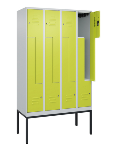 Les principales dimensions de C+P l’armoire vestiaire Classic Plus en un coup d’œil :par compartiment 1 tringle avec 3 doubles crochets coulissants anti-torsion. porte battante avec porte-étiquette et fentes d’aération. Les gonds intérieurs des portes battantes offrent l’avantage d’un visuel net, car aucune vis ou charnière n’est visible de l’extérieur. Le design de l’armoire n’est donc pas altéré et l’ensemble du meuble semble de meilleure qualité. La surface lisse est également plus facile à nettoyer, car aucun dépôt de saleté ou de poussière n’est à craindre aux endroits inaccessibles. Chaque porte est équipée de série d’un amortisseur, de sorte que, même fermée avec élan, elle ne claque pas. Cela contribue non seulement à améliorer l’environnement sonore, mais protège aussi l’armoire en acier des dommages. La structure BIONIC Steel Frame, inspirée de la nature, est une construction particulièrement efficace et stable. La structure interne raffinée composée de pliages, d’entretoises et d’espaces, ainsi que la plus grande épaisseur de matériau aux endroits cruciaux, comme à l’avant des parois latérales et dans les profilés de cloisons et de caissons, augmentent encore la rigidité. verrouillable avec serrure à cylindre. Les orifices de ventilation supplémentaires dans le compartiment, combinés aux fentes d’aération dans la porte, améliorent le flux d’air. L’intérieur de l’armoire est ainsi mieux ventilé et son contenu sèche plus vite, sans générer de mauvaises odeurs. Le piètement intégré réduit l'accumulation possible de la poussière et de la saleté en facilitant le nettoyage de toute la surface. Crée en plus un espace de rangement supplémentaire sous l'armoire. Les chaussures et les sacs ne sont plus dans le passage, et le risque de trébuchement est minimisé. structure en acier, soudé de manière stable. Cela rend la structure particulièrement robuste et résistante, et donc plus durable. Les coins et les angles soudés du corps garantissent une plus grande étanchéité et donc une meilleure protection contre la poussière, l’humidité et la saleté qu’une structure vissée. En outre, il n’est pas nécessaire de procéder à des travaux d’entretien réguliers ni à des réajustements. corps avec thermolaquage en RAL7035 gris clair, face avant avec thermolaquage en RDS 110 80 60 vert Guignet.