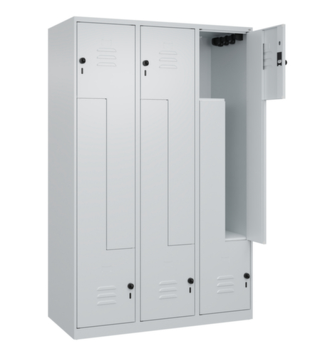 Les principales dimensions de C+P l’armoire vestiaire Classic Plus en un coup d’œil :par compartiment 1 tringle avec 3 doubles crochets coulissants anti-torsion. porte battante avec porte-étiquette et fentes d’aération. Les gonds intérieurs des portes battantes offrent l’avantage d’un visuel net, car aucune vis ou charnière n’est visible de l’extérieur. Le design de l’armoire n’est donc pas altéré et l’ensemble du meuble semble de meilleure qualité. La surface lisse est également plus facile à nettoyer, car aucun dépôt de saleté ou de poussière n’est à craindre aux endroits inaccessibles. Chaque porte est équipée de série d’un amortisseur, de sorte que, même fermée avec élan, elle ne claque pas. Cela contribue non seulement à améliorer l’environnement sonore, mais protège aussi l’armoire en acier des dommages. La structure BIONIC Steel Frame, inspirée de la nature, est une construction particulièrement efficace et stable. La structure interne raffinée composée de pliages, d’entretoises et d’espaces, ainsi que la plus grande épaisseur de matériau aux endroits cruciaux, comme à l’avant des parois latérales et dans les profilés de cloisons et de caissons, augmentent encore la rigidité. Verrouillable avec Porte-cadenas de sécurité pour cadenas. La serrure de sécurité est particulièrement résistante aux effractions puisqu’elle tourne en position verrouillée et se verrouille uniquement après le retrait de la serrure. Convient pour tous les cadenas avec une épaisseur d'anse de 6 - 8 mm. Les orifices de ventilation supplémentaires dans le compartiment, combinés aux fentes d’aération dans la porte, améliorent le flux d’air. L’intérieur de l’armoire est ainsi mieux ventilé et son contenu sèche plus vite, sans générer de mauvaises odeurs. Pour une apparence fine et un gain de place, l’armoire se pose directement au sol sans socle ni pieds. Des vis de mise à niveau assurent une pose sans vacillement en cas d’éventuelles irrégularités du sol. Le fond de l’armoire est galvanisé pour une protection anticorrosion améliorée. structure en acier, soudé de manière stable. Cela rend la structure particulièrement robuste et résistante, et donc plus durable. Les coins et les angles soudés du corps garantissent une plus grande étanchéité et donc une meilleure protection contre la poussière, l’humidité et la saleté qu’une structure vissée. En outre, il n’est pas nécessaire de procéder à des travaux d’entretien réguliers ni à des réajustements. corps avec thermolaquage en RAL7035 gris clair, face avant avec thermolaquage en RAL7035 gris clair.