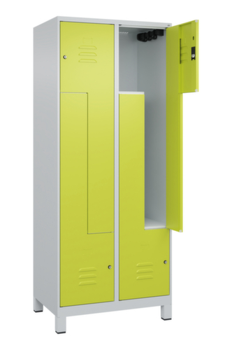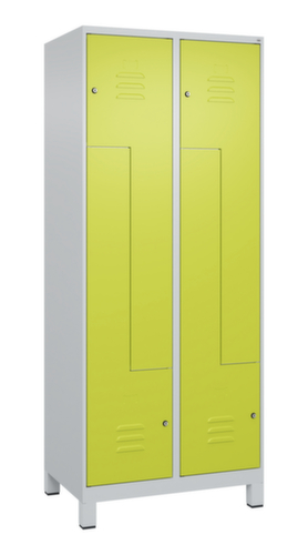 Les principales dimensions de C+P l’armoire vestiaire Classic Plus en un coup d’œil :par compartiment 1 tringle avec 3 doubles crochets coulissants anti-torsion. porte battante avec porte-étiquette et fentes d’aération. Les gonds intérieurs des portes battantes offrent l’avantage d’un visuel net, car aucune vis ou charnière n’est visible de l’extérieur. Le design de l’armoire n’est donc pas altéré et l’ensemble du meuble semble de meilleure qualité. La surface lisse est également plus facile à nettoyer, car aucun dépôt de saleté ou de poussière n’est à craindre aux endroits inaccessibles. Chaque porte est équipée de série d’un amortisseur, de sorte que, même fermée avec élan, elle ne claque pas. Cela contribue non seulement à améliorer l’environnement sonore, mais protège aussi l’armoire en acier des dommages. La structure BIONIC Steel Frame, inspirée de la nature, est une construction particulièrement efficace et stable. La structure interne raffinée composée de pliages, d’entretoises et d’espaces, ainsi que la plus grande épaisseur de matériau aux endroits cruciaux, comme à l’avant des parois latérales et dans les profilés de cloisons et de caissons, augmentent encore la rigidité. verrouillable avec serrure à cylindre. Les orifices de ventilation supplémentaires dans le compartiment, combinés aux fentes d’aération dans la porte, améliorent le flux d’air. L’intérieur de l’armoire est ainsi mieux ventilé et son contenu sèche plus vite, sans générer de mauvaises odeurs. Les pieds encastrés en plastique confèrent non seulement un aspect moderne et léger à l’armoire, qui paraît moins massive, mais offrent également des avantages pratiques. L’espace ouvert au-dessus du sol facilite le nettoyage et le matériau plastique offre une protection accrue contre la corrosion. Cet aspect est particulièrement important dans les environnements où les exigences en matière d’hygiène sont élevées. structure en acier, soudé de manière stable. Cela rend la structure particulièrement robuste et résistante, et donc plus durable. Les coins et les angles soudés du corps garantissent une plus grande étanchéité et donc une meilleure protection contre la poussière, l’humidité et la saleté qu’une structure vissée. En outre, il n’est pas nécessaire de procéder à des travaux d’entretien réguliers ni à des réajustements. corps avec thermolaquage en RAL7035 gris clair, face avant avec thermolaquage en RDS 110 80 60 vert Guignet.
