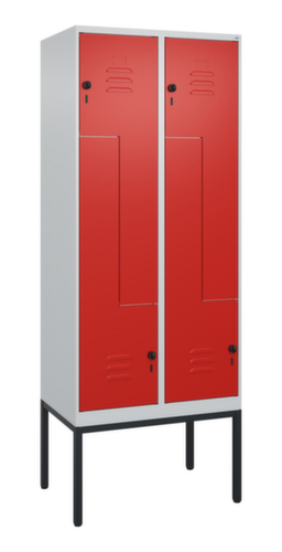 Les principales dimensions de C+P l’armoire vestiaire Classic Plus en un coup d’œil :par compartiment 1 tringle avec 3 doubles crochets coulissants anti-torsion. porte battante avec porte-étiquette et fentes d’aération. Les gonds intérieurs des portes battantes offrent l’avantage d’un visuel net, car aucune vis ou charnière n’est visible de l’extérieur. Le design de l’armoire n’est donc pas altéré et l’ensemble du meuble semble de meilleure qualité. La surface lisse est également plus facile à nettoyer, car aucun dépôt de saleté ou de poussière n’est à craindre aux endroits inaccessibles. Chaque porte est équipée de série d’un amortisseur, de sorte que, même fermée avec élan, elle ne claque pas. Cela contribue non seulement à améliorer l’environnement sonore, mais protège aussi l’armoire en acier des dommages. La structure BIONIC Steel Frame, inspirée de la nature, est une construction particulièrement efficace et stable. La structure interne raffinée composée de pliages, d’entretoises et d’espaces, ainsi que la plus grande épaisseur de matériau aux endroits cruciaux, comme à l’avant des parois latérales et dans les profilés de cloisons et de caissons, augmentent encore la rigidité. Verrouillable avec Porte-cadenas de sécurité pour cadenas. La serrure de sécurité est particulièrement résistante aux effractions puisqu’elle tourne en position verrouillée et se verrouille uniquement après le retrait de la serrure. Convient pour tous les cadenas avec une épaisseur d'anse de 6 - 8 mm. Les orifices de ventilation supplémentaires dans le compartiment, combinés aux fentes d’aération dans la porte, améliorent le flux d’air. L’intérieur de l’armoire est ainsi mieux ventilé et son contenu sèche plus vite, sans générer de mauvaises odeurs. Le piètement intégré réduit l'accumulation possible de la poussière et de la saleté en facilitant le nettoyage de toute la surface. Crée en plus un espace de rangement supplémentaire sous l'armoire. Les chaussures et les sacs ne sont plus dans le passage, et le risque de trébuchement est minimisé. structure en acier, soudé de manière stable. Cela rend la structure particulièrement robuste et résistante, et donc plus durable. Les coins et les angles soudés du corps garantissent une plus grande étanchéité et donc une meilleure protection contre la poussière, l’humidité et la saleté qu’une structure vissée. En outre, il n’est pas nécessaire de procéder à des travaux d’entretien réguliers ni à des réajustements. corps avec thermolaquage en RAL7035 gris clair, face avant avec thermolaquage en RAL3020 rouge signalisation.