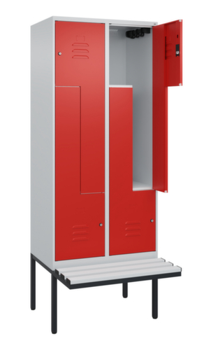 Les armoires de la série Classic Plus ne se contentent pas de satisfaire aux exigences de base habituelles. Elles présentent une structure soudée qui les rend particulièrement solides et durables. Ce faisant, elles ne font aucun compromis en termes d’esthétique. Avec leur design industriel aux fentes d’aération classiques, aux bords latéraux étroits et aux portes encastrées, ces armoires vestiaires présentent une belle apparence homogène, notamment en position alignée. Les vestiaires Z offrent une solution peu encombrante et efficace pour les vestiaires ou les garde-robes étroits. Le vestiaire mini-largeur offre, sur la même surface, 2 tiroirs par compartiment pour 2 personnes pour le rangement des effets personnels. Contrairement aux casiers, la forme en Z permet de suspendre sans problème des vêtements plus longs