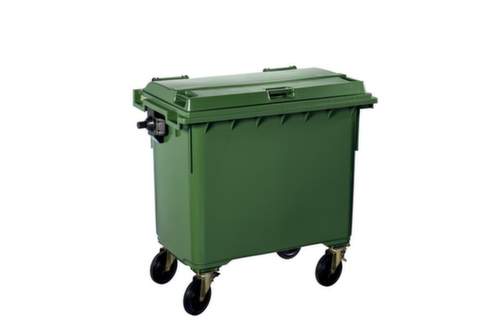 "longDescription": "Poubelle à 4 roues en polyéthylène haute densité 770L vert uniquement en matériau neuf, résistant aux UV, au froid, à la chaleur et aux produits chimiques, larges poignées sur le couvercle, roues à roulement doux avec pneus en caoutchouc solide, axe de roue solide en acier, galvanisé, pédale en accessoire - uniquement pour 120L, selon la norme : DIN30740/EN840, anneau pour porte-sac - uniquement pour 120L<br>",