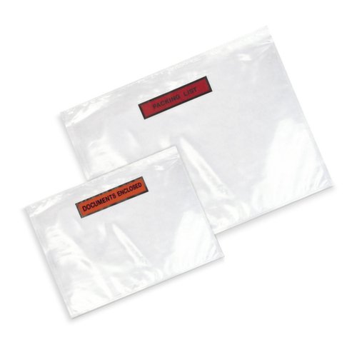 Les principales dimensions de la pochette pour documents d'accompagnement en un coup d'œil :En Polyéthylène avec papier protecteur en silicone épaisseur 60 µm. face arrière autocollante.