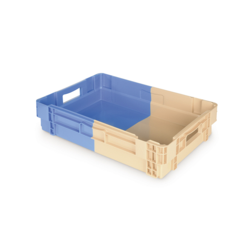 Nos bacs gerbables et emboîtables au format Euronorm sont la solution idéale pour le stockage et le transport des produits les plus divers. Ils sont disponibles en deux versions : avec des parois perforées pour les produits qui nécessitent une circulation d'air et avec des parois fermées pour les produits qui doivent être protégés de l'humidité et de la saleté. Parois perforées et fermées Les bacs gerbables et emboîtables à parois perforées disposent d'un fond renforcé qui assure la stabilité malgré la perforation. Cette variante est parfaite pour les produits qui doivent être aérés. Les bacs à parois fermées sont idéaux pour les produits sensibles qui ont besoin d'être protégés des influences extérieures. Deux couleurs pour une manipulation facile Les bacs gerbables par rotation sont conçus en deux couleurs (bleu et kaki). Ces couleurs vous aident à déterminer le sens d'empilage ou de mise en boîte correct : - bacs de même couleur l'un sur l'autre : empilage - bacs de couleurs décalées l'un sur l'autre : mise en boîte (gain de place jusqu'à 50%) Détails techniques Nos bacs gerbables-emboîtables sont fabriqués en HDPE de haute qualité (sauf 285342 et 285343, fabriqués en PP). Ils ont une capacité de charge maximale de 20 kg et un volume de 22 à 47 litres, selon le modèle. Les bacs sont à la fois empilables et emboîtables, ce qui permet une utilisation efficace de l'espace de stockage. Accessoires complémentaires Pour plus de sécurité, vous pouvez acheter des couvercles à charnières en option pour les bacs gerbables Euronorm afin de fermer les bacs. Conclusion : nos bacs gerbables et emboîtables au format Euronorm vous offrent une solution polyvalente et pratique pour le stockage et le transport. Choisissez entre des parois perforées ou fermées selon vos besoins et profitez de la conception bicolore pour une manipulation facile. Découvrez également notre vaste gamme d'Eurobox pour optimiser encore plus votre logistique de stockage.