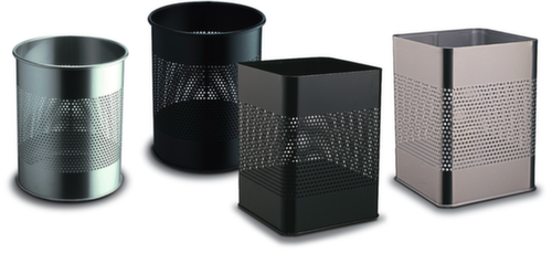 "metaDescription": "Durable Corbeille à papier avec perforations décoratives - en acier, de différentes formes et couleurs",