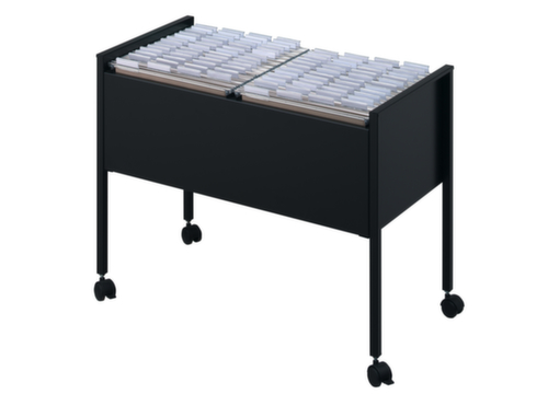 "longDescription": "<h2>Chariot dossiers suspendus Economy</h2><strong>Dossiers accessibles partout<br>Exécution ouverte pour 100 dossiers également disponible en argent métallisé sans supplément de prix. N'hésitez pas à nous contacter.</strong><br><ul><li>Pour un classement ordonné et mobile - adapté aux dossiers suspendus au format DIN A 4</li><li><strong>Robuste et antirayures</strong> - en acier avec revêtement de résine époxy</li><li>Facile à déplacer grâce à 4 roulettes pivotantes, dont 2 avec frein.</li></ul><br><h3>Le choix vous appartient :</h3><ul><li><strong>Rapidement à portée de main ou rangement protégé</strong> - ouvert ou avec couvercle verrouillable</li></ul>",