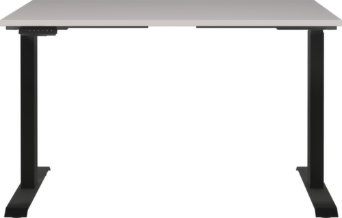 panneau en aggloméré avec revêtement mélaminé, facile d’entretien finition finition en cachemire. bord avec bande de chant ABS résistante aux chocs qui offre une protection contre les fissures et les éclatements disgracieux. piètement en T en métal avec finition époxy résistante aux chocs et aux rayures en noir. réglage en hauteur via moteur électrique. fonctions : Mémorisation et rappel automatique des hauteurs de table programmées grâce à la fonction mémoire. châssis avec patins en plastique de mise à niveau, parfaits pour compenser les inégalités du sol. Avec câble d'alimentation, fiche et unité de commande électrifiable.