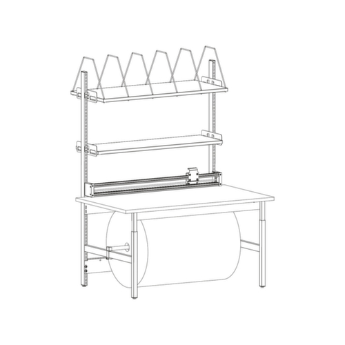 1 dispositif dérouleur/de coupe, 2 tablettes, 6 manches insérables
