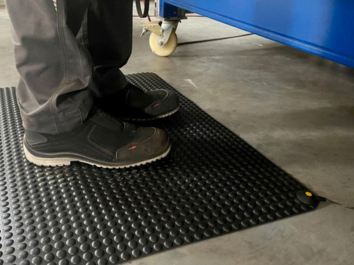 Convient pour zones de travail ESD / pour sollicitations moyennes à élevées en intérieur. tapis. ESD- exécution électroconductrice, résistance de fuite 108 - 10? ohms. 2 couches. kit comprenant : élément de tapis, 2 boutons montés de diamètre 10 mm et 1 câble de terre.