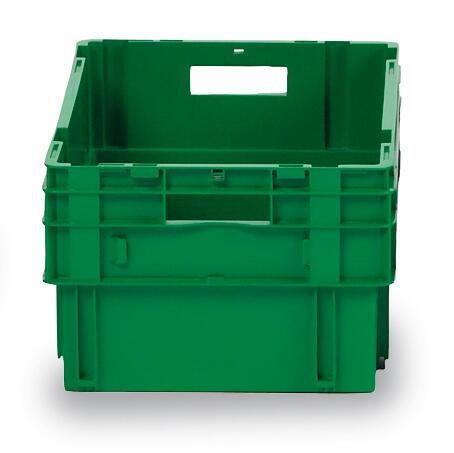 "description": "HxLxl 420x600x400mm, 80l, PP, vert, parois plein, tablette plein/rainures de renfort",