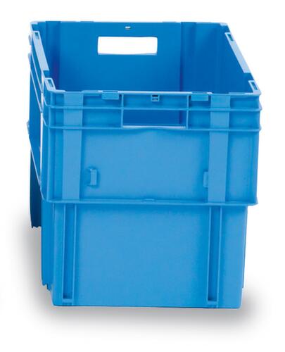 "description": "HxLxl 420x600x400mm, 80l, PP, bleu, parois plein, tablette plein/rainures de renfort",