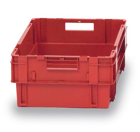 "description": "HxLxl 420x600x400mm, 80l, PP, rouge, parois plein, tablette plein/rainures de renfort",