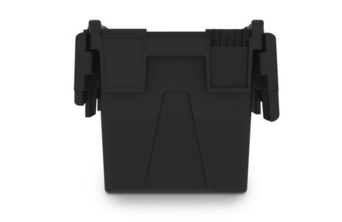 en polypropylène incassable en noir. La marchandise se stocke à l’abri de la poussière grâce aux parois fermées et le récipient se nettoie facilement. fond plein. La marchandise stockée est protégée contre la poussière et la saleté grâce au couvercle à charnière en 2 parties. Pour une protection supplémentaire lors du transport, le couvercle est plombable. Avec couvercle fermé à 8 points gerbable. Gerbages avec couvercle ouvert. Convient parfaitement pour les systèmes d’automatisation dans des chaînes de livraison modernes grâce à la conception spéciale du manchon. résistant à la température de -20 °C à +40 °C.