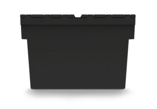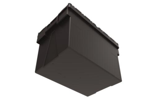 en polypropylène incassable en noir. La marchandise se stocke à l’abri de la poussière grâce aux parois fermées et le récipient se nettoie facilement. fond plein. La marchandise stockée est protégée contre la poussière et la saleté grâce au couvercle à charnière en 2 parties. Pour une protection supplémentaire lors du transport, le couvercle est plombable. Avec couvercle fermé à 8 points gerbable. Gerbages avec couvercle ouvert. Convient parfaitement pour les systèmes d’automatisation dans des chaînes de livraison modernes grâce à la conception spéciale du manchon. résistant à la température de -20 °C à +40 °C.