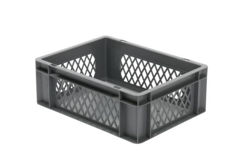 dimensions adaptées aux palettes européennes. en polypropylène incassable en gris. Parois ajourés, fond plein. Plusieurs niveaux gerbable. convient pour aliments. Adapté aux convoyeurs à rouleaux. Résistant à la température -20 °C à +80 °C. Convient pour différents tissus, nous consulter.