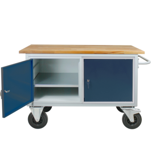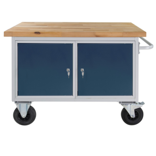4 roulettes sous le châssis assurent la mobilité nécessaire au quotidien. Équipement : 2 armoires, 2 tablettes. porte à battants. poignée. verrouillable avec verrouillage centralisé. verrouillage séparé des portes (simultané). structure en tube d’acier carré de 30 x 30 mm, soudé. châssis avec finition époxy résistante aux chocs et aux rayures en RAL7035 gris clair. face avant avec finition époxy résistante aux chocs et aux rayures en RAL7016 gris anthracite. Facile à manœuvrer grâce à 2 roues pivotantes et 2 roues fixes. Les freins situés sur les roulettes pivotantes garantissent une bonne stabilité. Ø de roue 200 mm.