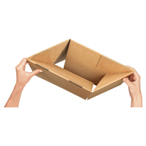 "longDescription": "<h2>Boîte pliante en carton ondulé</h2><ul><li>Carton ondulé avec couverture extérieure stable en papier kraft</li><li>Erection par légère pression sur les côtés du carton</li><li>Double renforcement du fond</li><li>Résistant à l'humidité et aux fluctuations de température</li><li>Très bonne adhérence pour les rubans adhésifs de toutes sortes pour un scellement sécurisé</li><li>Livraison à plat</li></ul><br><strong>Bon à savoir !</strong><br>Faites encore plus d'économies en commandant plusieurs lots. Cela est possible à partir de deux lots.<br>",