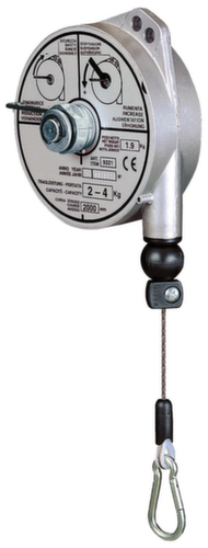 "longDescription": "<h2>Équilibreur à ressort</h2><strong>Capacité de charge jusqu'à 14 kg</strong><br><ul><li>Convient pour les outils, les commandes de grues, les machines de meulage, de polissage ou de rivetage</li><li>Boîtier en aluminium moulé sous pression</li><li>Câble métallique en acier inoxydable</li><li>Douilles lisses et guidage précis du câble</li><li>Avec crochet de sécurité</li><li>Corde supplémentaire comme protection contre les chutes</li><li>Ressort réglable en fonction du poids total avec une clé Allen</li><li>Le dispositif de verrouillage bloque pas à pas lorsqu'on le retire, le déblocage se fait en tirant sur la corde.</li></ul>",