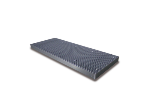 "longDescription": "<h2>Plateau à fond plat</h2><strong>facile à manutentionner grâce à sa faible hauteur de construction</strong><br><ul><li>Convient aux substances polluantes pour l'eau et inflammables.</li><li><strong>Protection grande surface</strong> contre les éclaboussures et les pertes à l'égouttage lors de la manutention des fûts</li><li><strong>À manutentionner par gerbeur et chariot de levage</strong> grâce à la faible hauteur de construction et aux rampes d'accès adaptées</li><li>Hautement chargeable - avec des grilles amovibles</li><li><strong>Structure modulaire stable</strong> - en tôle d'acier galvanisée à chaud épaisseur 3 mm</li></ul><br><h3>Le choix vous appartient :</h3><ul><li><strong>Dimensions personnalisables</strong> grâce aux modules variés</li></ul><br><strong>Dispositions légales</strong><br>Construction des bacs de rétent. agréée par les autorités. Pour stockage abrité de produits dangereux pour l'eau et inflammables.<br>",