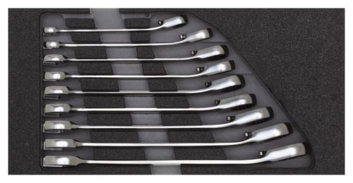 "longDescription": "En référence aux normes DIN 3113, ISO 3318, tête de cliquet coudée à 15°, réversible droite/gauche, position de la mâchoire à 15°, surface chromée satinée mate, acier au chrome vanadium, En module de mousse<br>",