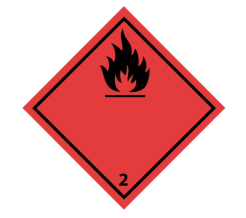 "metaDescription": "Étiquette pour produits dangereux - gaz inflammables, Lxl 100x100mm, noyau Ø 40mm, papier, rouge/noir",
