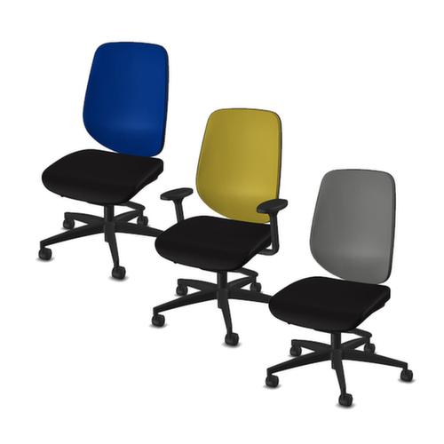 "description": "mécanique Automatic-Move, a. accoudoirs 2D, assise tissu noir, assise HxlxP 390-510x490x380-440mm, dossier tissu 3D coloris moutarde, pièt. 5 br. plastique, roulette pour sièges de bureau",