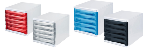 "metaDescription": "helit Module à tiroirs coloré the wave - avec 5 tiroirs, HxlxP 250x265x340 mm, Plastique, Corps blanc, Face avant en différents coloris",