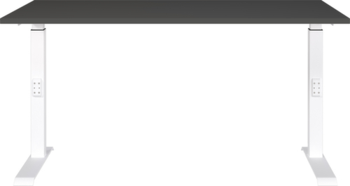 panneau en aggloméré avec revêtement mélaminé, facile d’entretien finition graphite. forme de panneau angulaire. bord Une bande de chant ABS résistant aux chocs protège tous les bords de fissures et d'éclatements inesthétiques. piètement en C en métal avec finition époxy résistante aux chocs et aux rayures en blanc. réglage en hauteur via mécanisme. châssis avec patins en plastique.