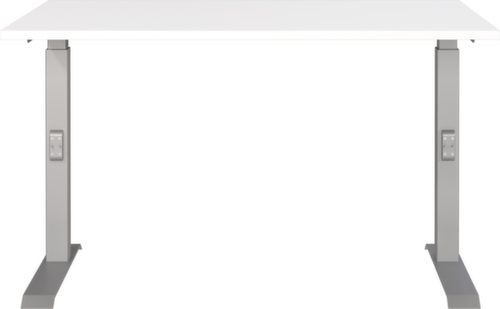 panneau en aggloméré avec revêtement mélaminé, facile d’entretien finition blanc. bord avec bande de chant ABS résistante aux chocs qui offre une protection contre les fissures et les éclatements disgracieux. piètement en C en métal avec finition époxy résistante aux chocs et aux rayures en argent. réglage en hauteur via mécanisme. châssis avec patins en plastique de mise à niveau, parfaits pour compenser les inégalités du sol.