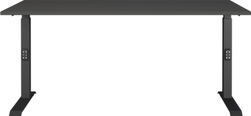 panneau en aggloméré avec revêtement en résine mélaminée antirayures et facile d'entretien finition graphite. bord Une bande de chant ABS résistant aux chocs protège tous les bords de fissures et d'éclatements inesthétiques. piètement en C en métal avec finition époxy résistante aux chocs et aux rayures en noir. réglage en hauteur via mécanisme. châssis avec patins en plastique de mise à niveau, parfaits pour compenser les inégalités du sol.