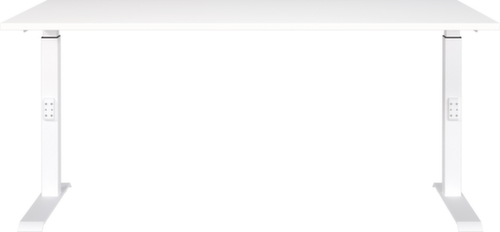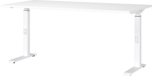 panneau en aggloméré avec revêtement en résine mélaminée antirayures et facile d'entretien finition blanc. bord Une bande de chant ABS résistant aux chocs protège tous les bords de fissures et d'éclatements inesthétiques. piètement en C en métal avec finition époxy résistante aux chocs et aux rayures en blanc. réglage en hauteur via mécanisme. châssis avec patins en plastique de mise à niveau, parfaits pour compenser les inégalités du sol.