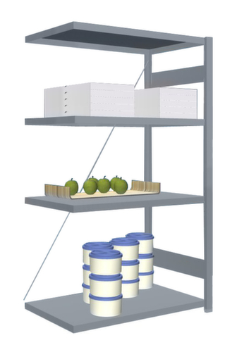 rayonnage suivant avec 2 montants, plateaux conf. à l’offre