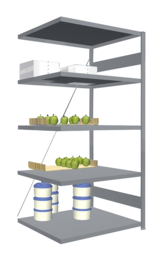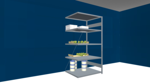 rayonnage suivant avec 2 montants, plateaux conf. à l’offre